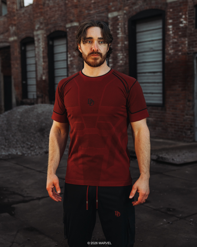 Inspired by the iconic red suit and reworked as modern training apparel, this limited collection brings Daredevil’s unmistakable look into performance-driven design. Every piece is built with a streamlined silhouette and durable construction, designed to move cleanly through training sessions and everyday wear.This collection is made as training gear. The result is apparel that holds its shape, stays comfortable through movement, and delivers a sharp, structured look the moment it’s on. This is Daredevil, reimagined by SuperX. In collaboration with Marvel.